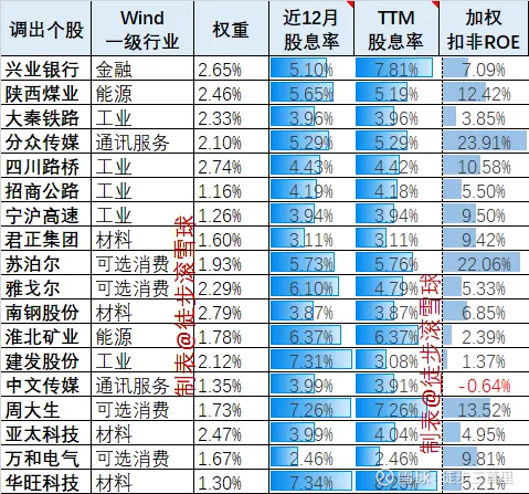 调出个股中,兴业银行股息率7.81%、华旺科技8.25%,貌似遗憾。新纳入个股,格力电器、济川药业股息率超7%,也算是有所弥补。