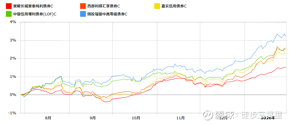 综合而言,信用债最近2-3个月走势不错,然后西部利得汇享、中银信用赠利和国投瑞银中高等级债券, 阶段性跑赢。