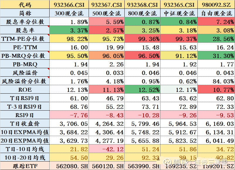 综合多个维度做了个表格,希望对大家判断合用的现金流指数有帮助。