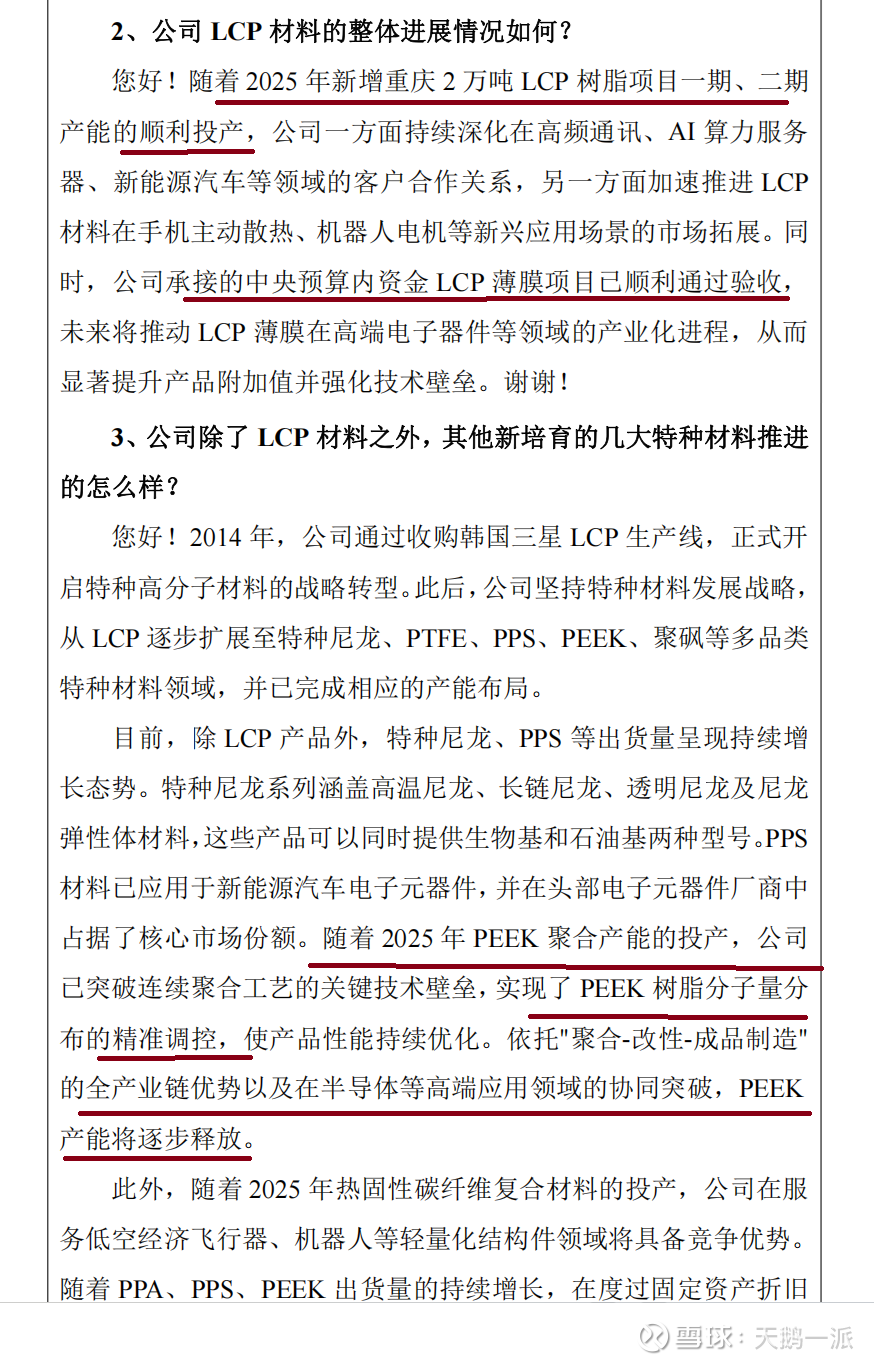 20260121最新调研情况:LCP薄膜、PEEK产能等:
