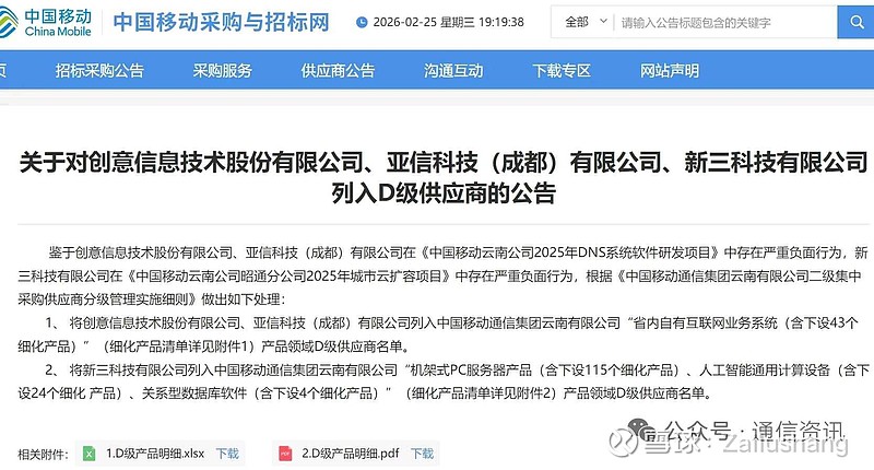 (成都)有限公司、新三科技有限公司列入D级供应商的公告。