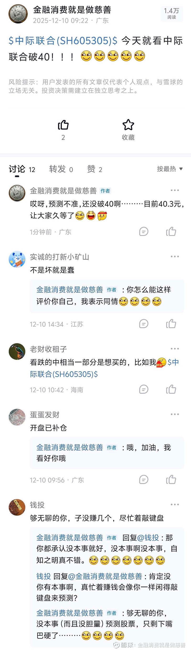 非常抱歉,这个股票我预测不准,没有破40,最低只有40.01。我下次再思考一下吧。至于那些张嘴就骂人的货色,你们一定会赚的。