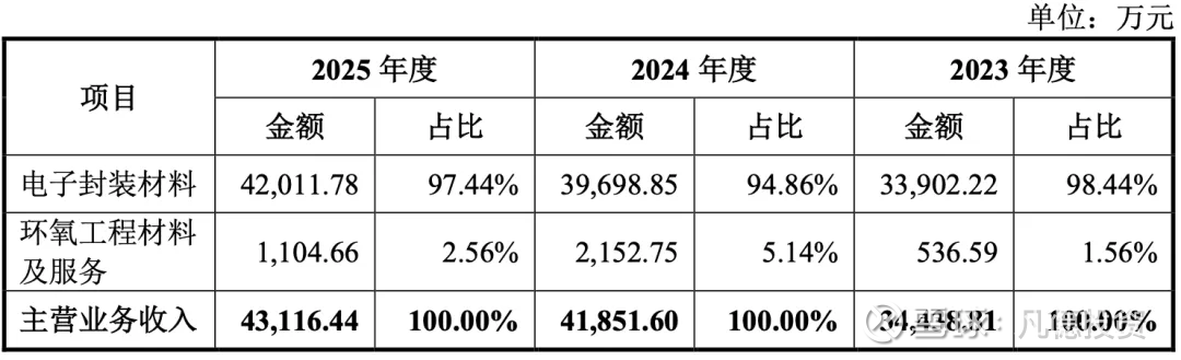 公司主营业务为高性能热固性复合材料的研发、生产和销售,目前主要产品包括环氧模塑料、液态环氧封装料、有机硅胶、酚醛模塑料和导电银胶等电子封装材料,广泛应用于半导体、汽车电子及其他电子电器等领域的封装,同时提供电子行业洁净室工程领域环氧工程材料及服务。