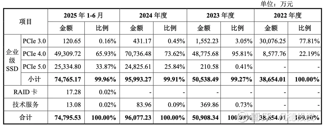 大普微主要从事数据中心企业级 SSD 产品的研发和销售,是业内领先、国内极少数具备企业级 SSD“主控芯片+固件算法+模组”全栈自研能力并实现批量出货的半导体存储产品提供商。大普微专注数据中心企业级 SSD,产品代际覆盖 PCIe 3.0 到5.0,充分满足各类型客户的产品需求。报告期内,公司企业级 SSD 累计出货量达 4,900PB 以上,其中搭载自研主控芯片的出货比例达 75%以上。根据 IDC 数据,最近三年国内企业级SSD 市场中公司占有率稳居市场前列,国际厂商仍占据主导地位。
