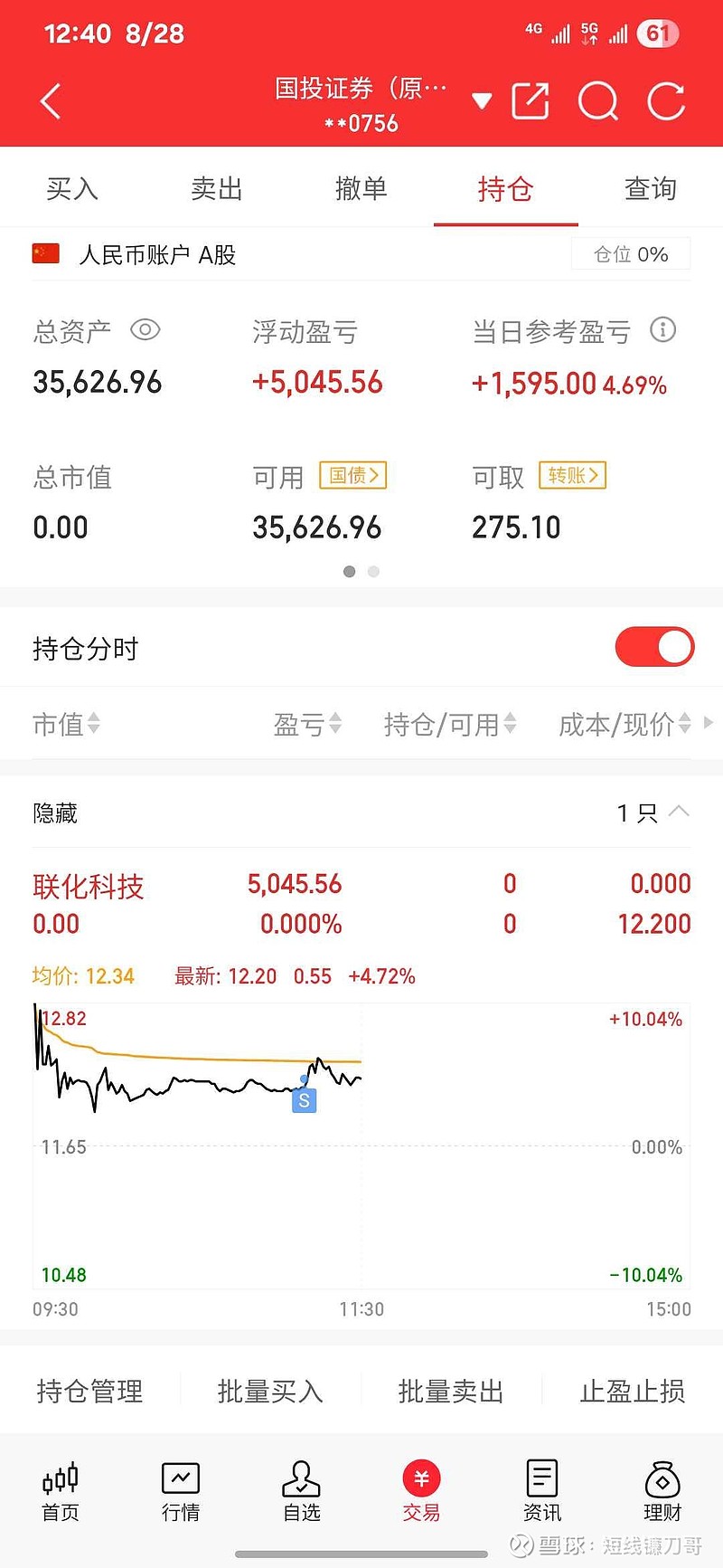 $联化科技(SZ002250)$ 在这票上赚了15个点,开盘涨停的时候我真的是很想卖了的,但没想到我还是忍住了,觉得如果是有分歧转一致的话,接下来票就比较硬,会走趋势,没想到分歧太大。从我个人角度是这么认为的,可能还需要一段时间打磨,但对于短线选手来说,我等不了那么久,所以就抛了。后期我还会继续买入,但是要看合适的价格。今日盈利1595,总利润15626.96,这个月总资产突破四万,本金翻倍的可能性比较渺茫。