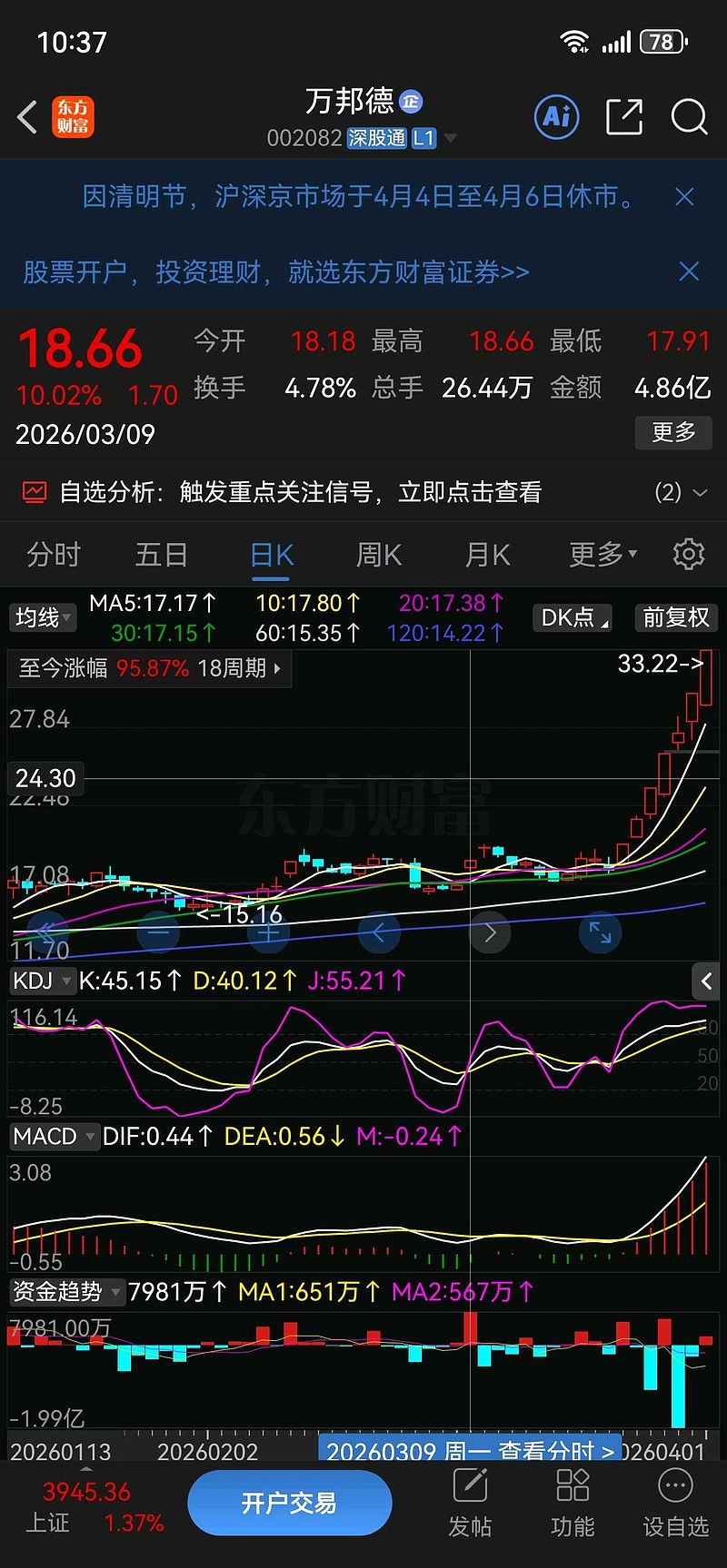 3月9日涨停,业绩预告很好,但是之后的走势是冲高回落再拉升!
