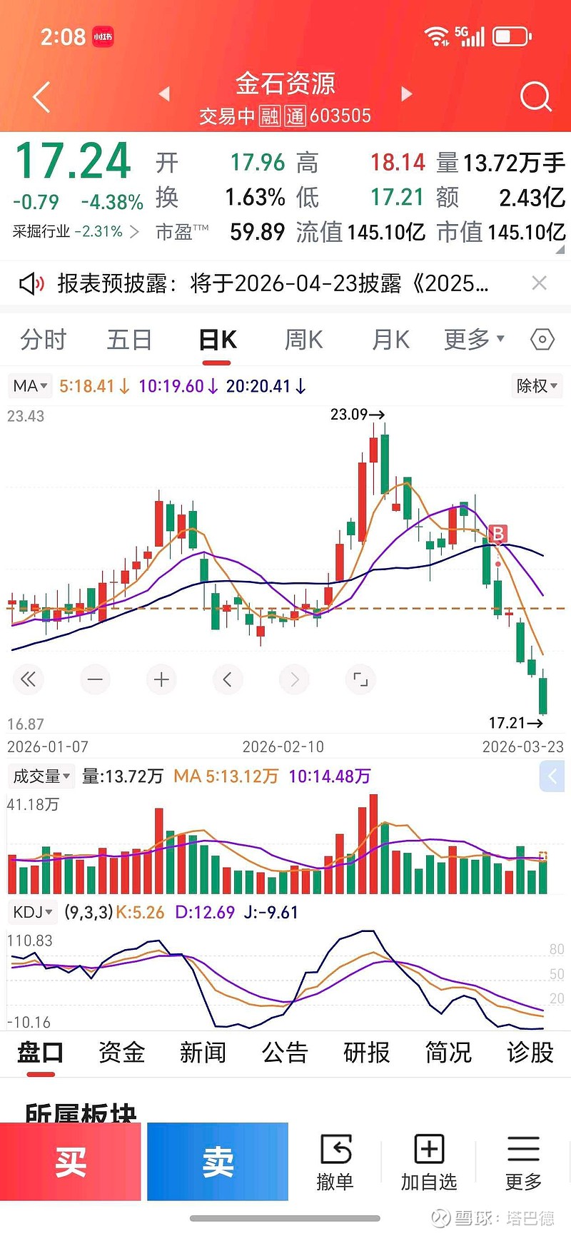 $金石资源(SH603505)$