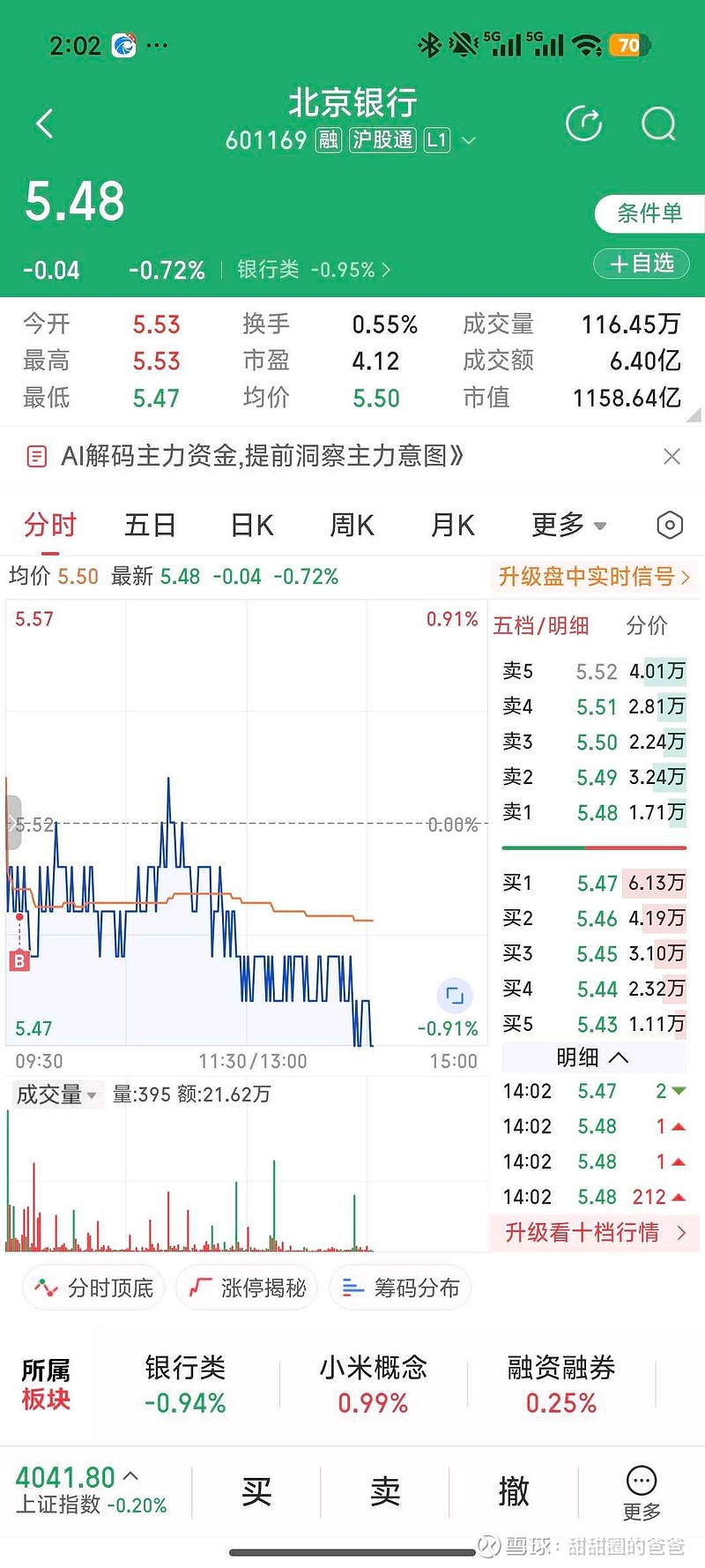 $北京银行(SH601169)$