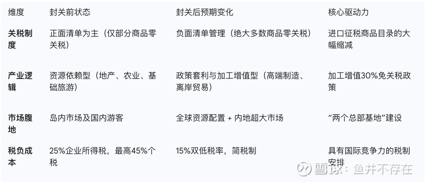 封关运作将从根本上改变海南的经济结构,使其从依赖房地产和传统旅游的单一模式,转向以贸易、航运、现代金融、高新技术产业为主导的外向型经济体系。这种转变是结构性的、深远的。