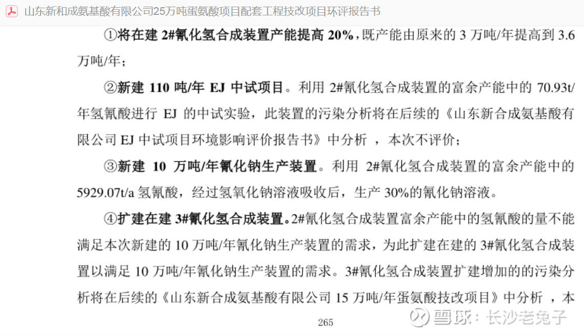 2024年6月3日网上环评公示信息:新和成拟在现有15万吨/年蛋氨酸生产线(5万吨/年+10万吨/年)的基础上进行改扩建,项目建成后,形成年产22万吨蛋氨酸生产规模。