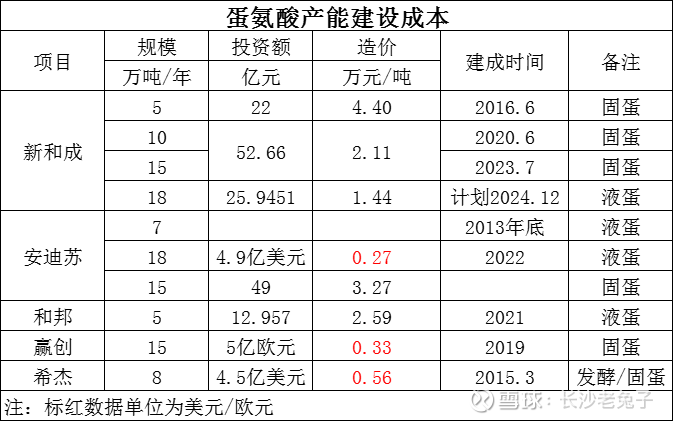 从产能建设成本比较,新和成的建设成本无论是固蛋还是液蛋都比同行低。