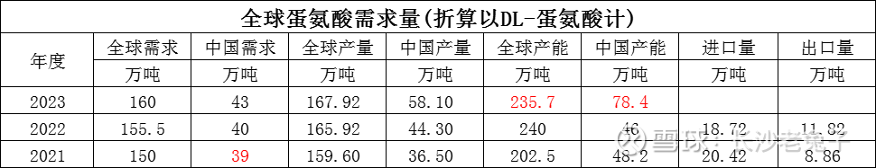 2022年全球蛋氨酸产能165.7万吨(折算以DL-蛋氨酸计),高于155.5万吨的全球需求。