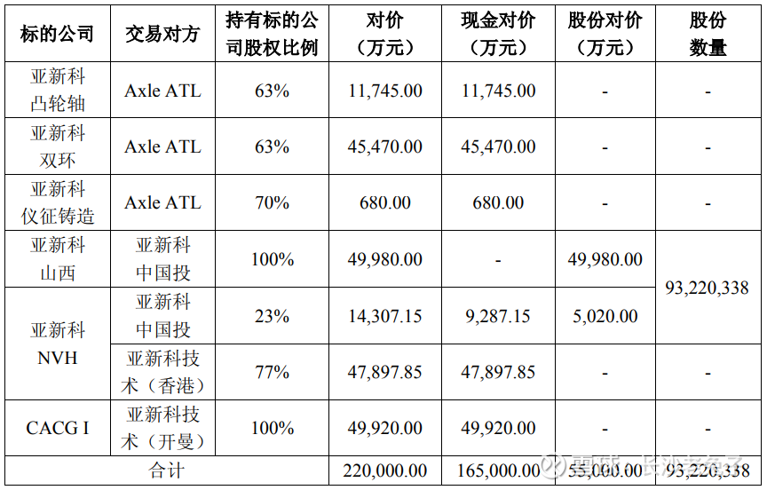 收购亚新科资产概况