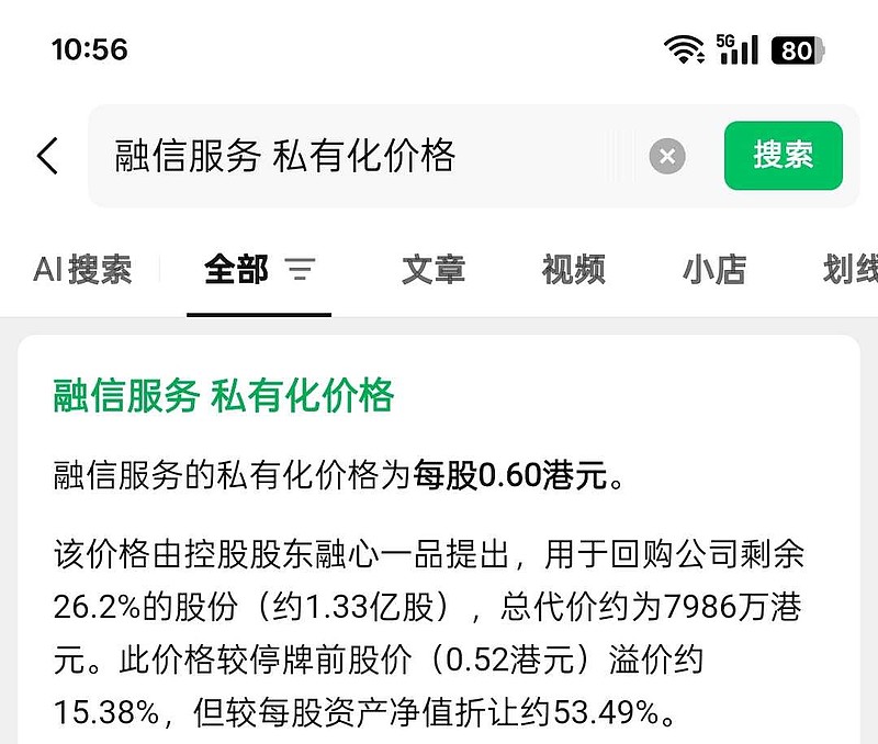 而且港股物业股抄底还有一个风险,大股东可能会低价私有化,溢价15%左右就私有化了,比如融信服务