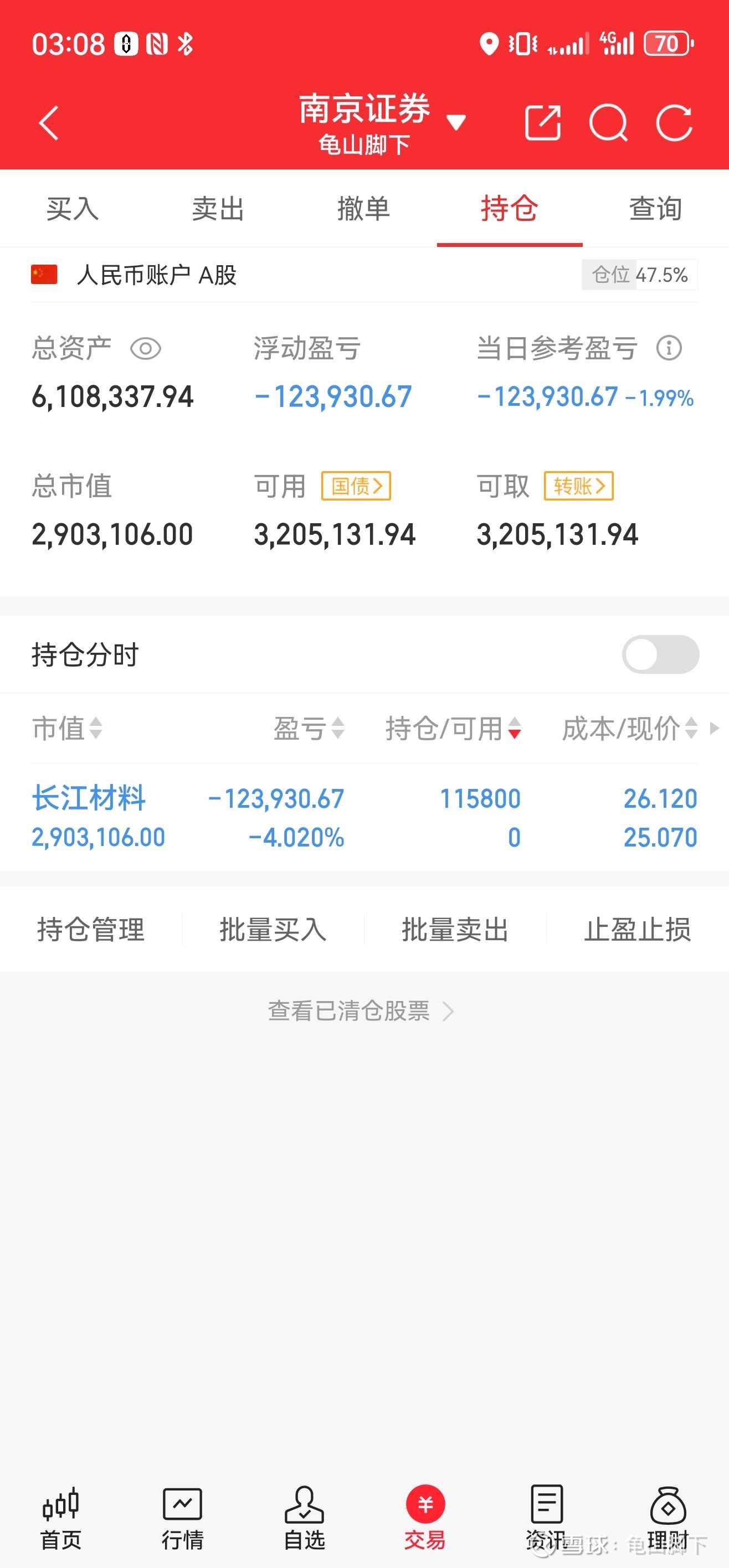 今天亏钱,没踩住市场的节奏和风格,去了连板接力的小票长江材料