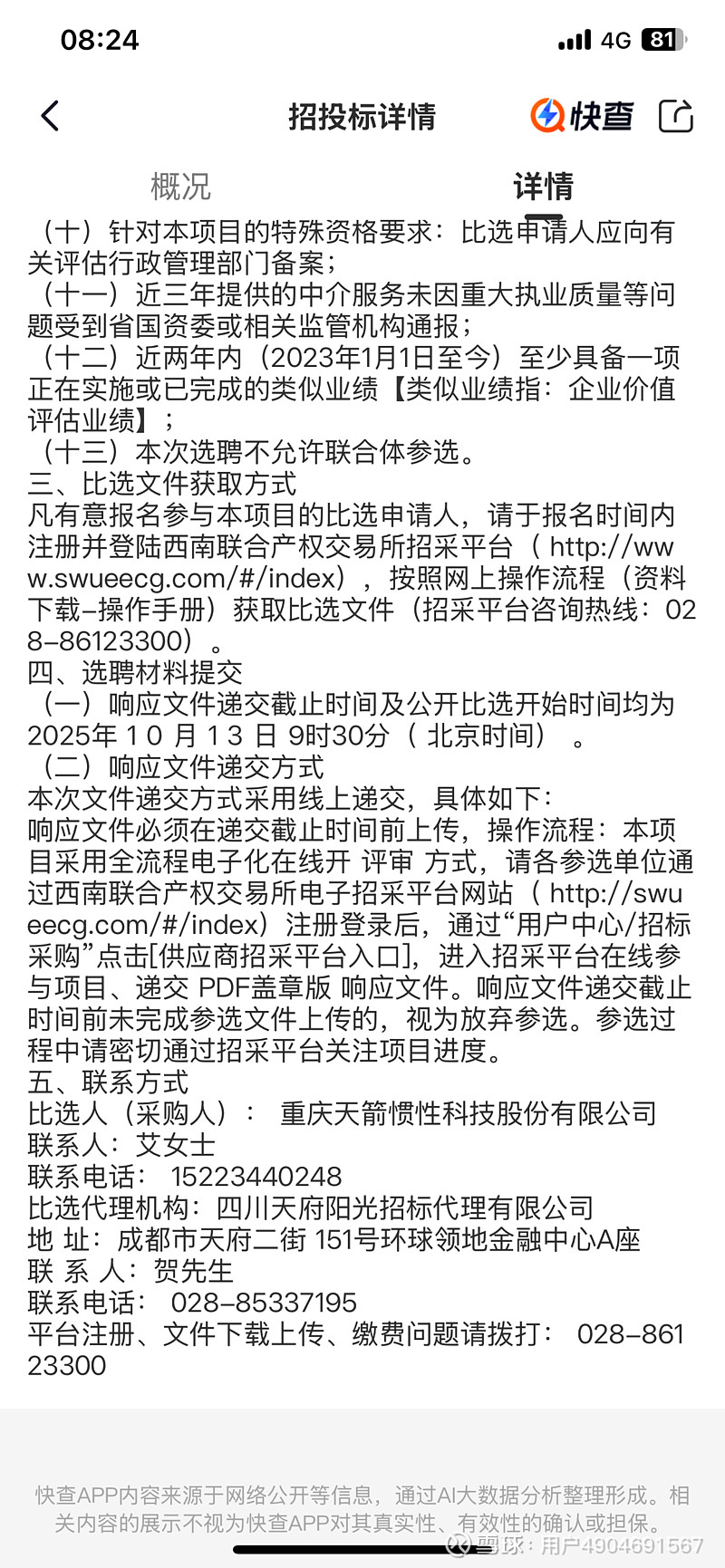 综上,此次招标是四川发展推动重庆天箭在成都布局、实现资产整合的关键动作,A、B项目对应的公司大概率会注入其成都公司,最终服务于成渝航空航天产业协同及上市平台的资本运作。