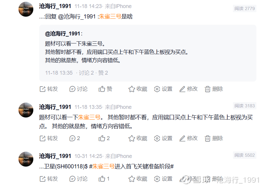 其中关注度最高的是朱雀三号,而这个朱雀三号第一次提及的时候是十月底和十一月十八号。