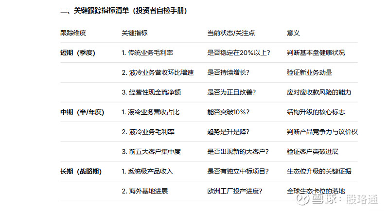 ②中期(成长线):液冷业务能否突破合资绑定,实现客户多元化与订单规模化;③短期(生命线):传统业务能否抗周期企稳,为新业务输血研发与扩张资金。
