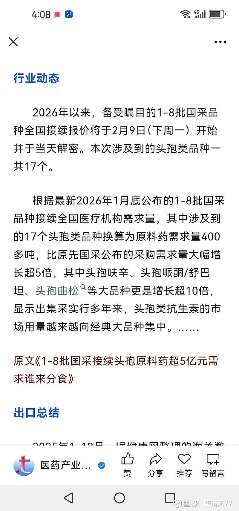 伊朗是抗生素/原料药出口国,冲突→供给收缩→全球中间体价格上涨。