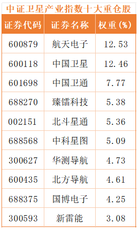 卫星关联个股:航天电子、中国卫星、中国卫通、臻镭科技、北斗星通、中科星图、华测导航、北方导航、国博电子、新雷能。