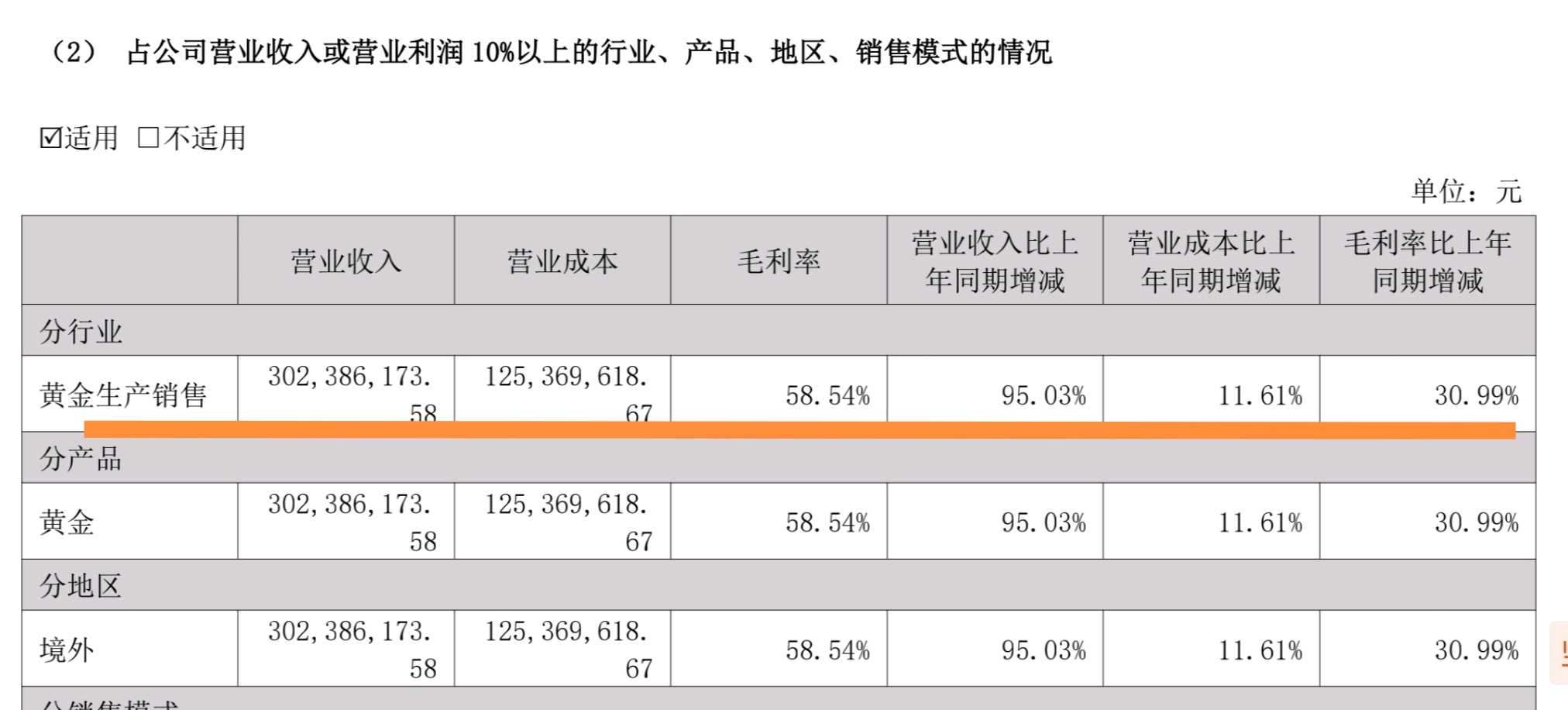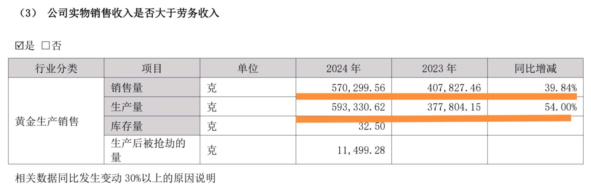 一、黄金产量增长54%,营业收入近倍增,毛利率提升31个百分点至58.5%。