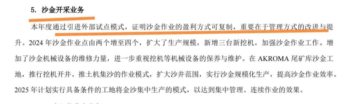 六、沙金开采业务锦上添花。