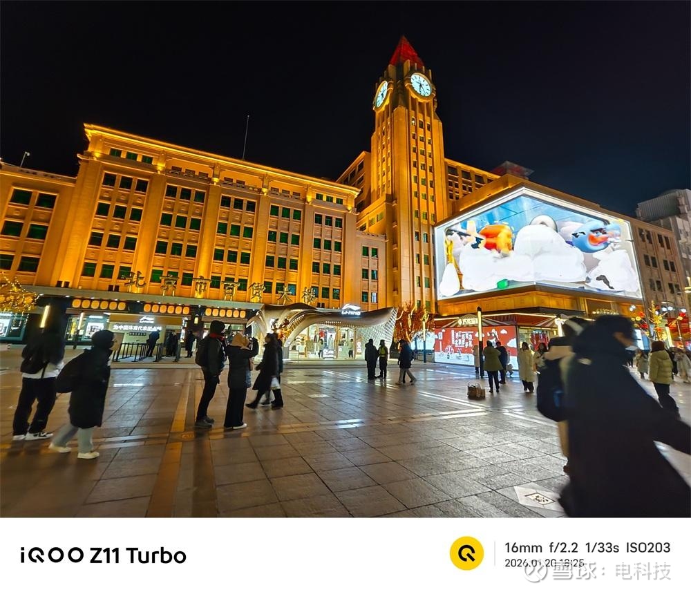 在夜晚环境下,iQOO Z11 Turbo依旧有着不错的成片效果,整体画面色彩层次分明。在软硬件协同之下,即便是在夜间暗光环境拍摄室外高亮的大型屏幕广告牌,也能够压住光线不过量,让屏幕内容清晰可见。