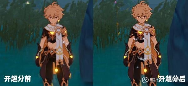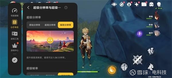 在比较吃性能的游戏《原神》下,开启“超分超帧”,可以明显看到游戏画面中的细节显著提升。在Monster+模式下,配合散热背夹,甚至可以实现1.5K纹理超分+144fps超帧并发。