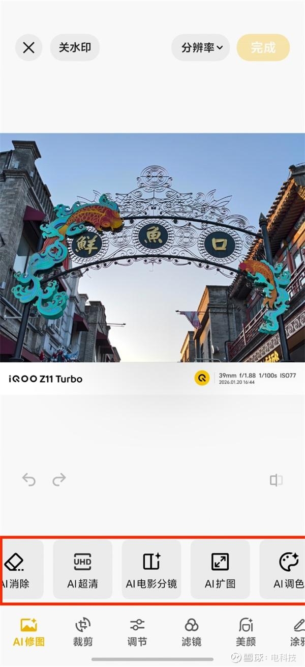 修图上,AI能力的加入也让后期照片处理和分享变得更加方便,iQOO Z11 Turbo新增了经典正负片、清透蓝调三大氛围感胶片色彩等多种AI修图模式,同时也支持Live Photo动态照片拍摄,轻松搞定日常生活的快速社交分享。