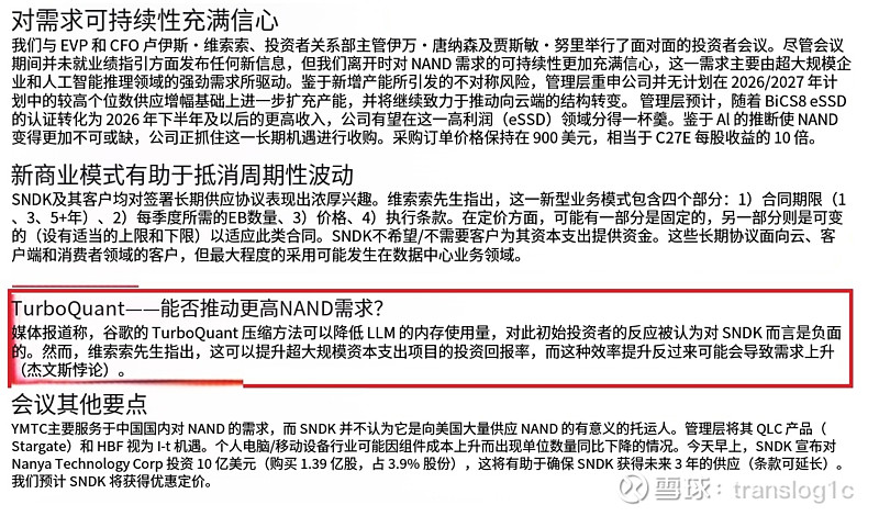 美银昨日与 $SNDK 管理层会面,并从源头得到了同样的结论