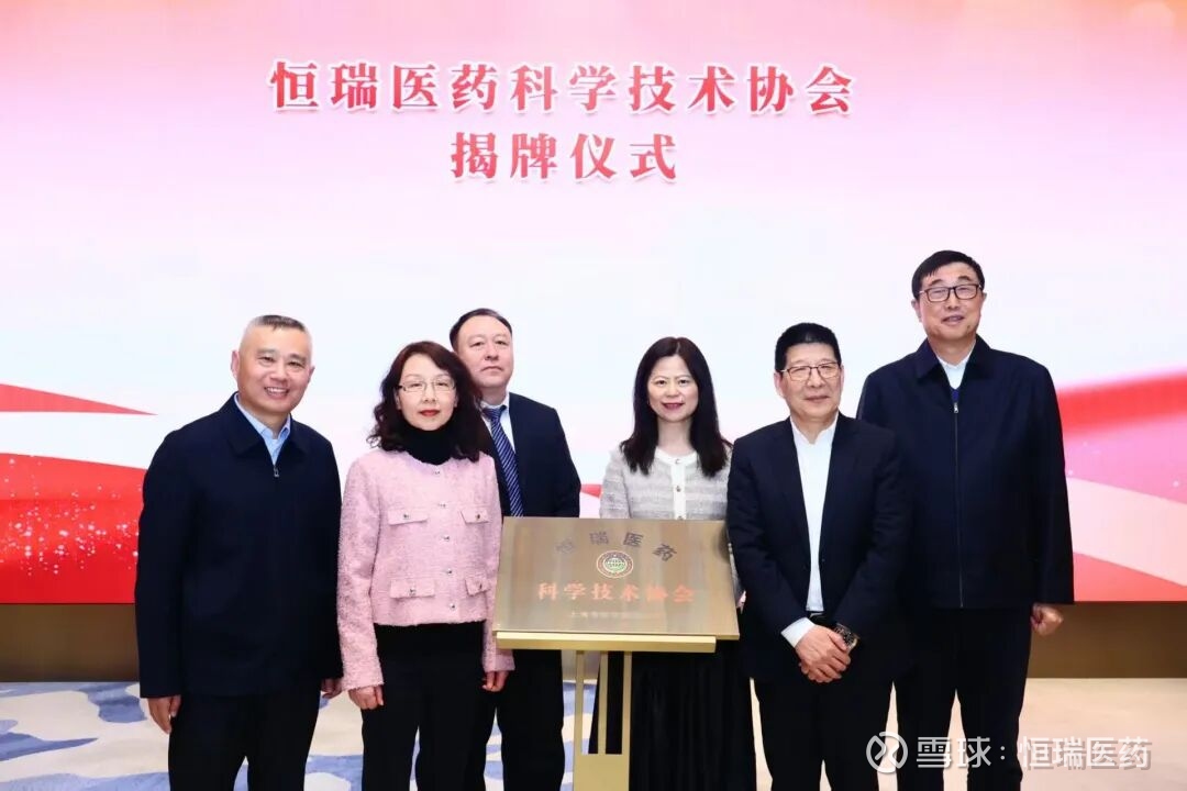 2026年1月31日,“恒瑞医药科学技术协会”揭牌仪式隆重举行。上海市科学技术协会副主席陈馨与恒瑞医药执行副总裁张连山共同为协会揭牌,中国科技发展基金会理事长宋军、中国科协组织人事部部长周大亚、企业创新服务中心主任张清、恒瑞医药总裁冯佶共同出席并见证仪式。