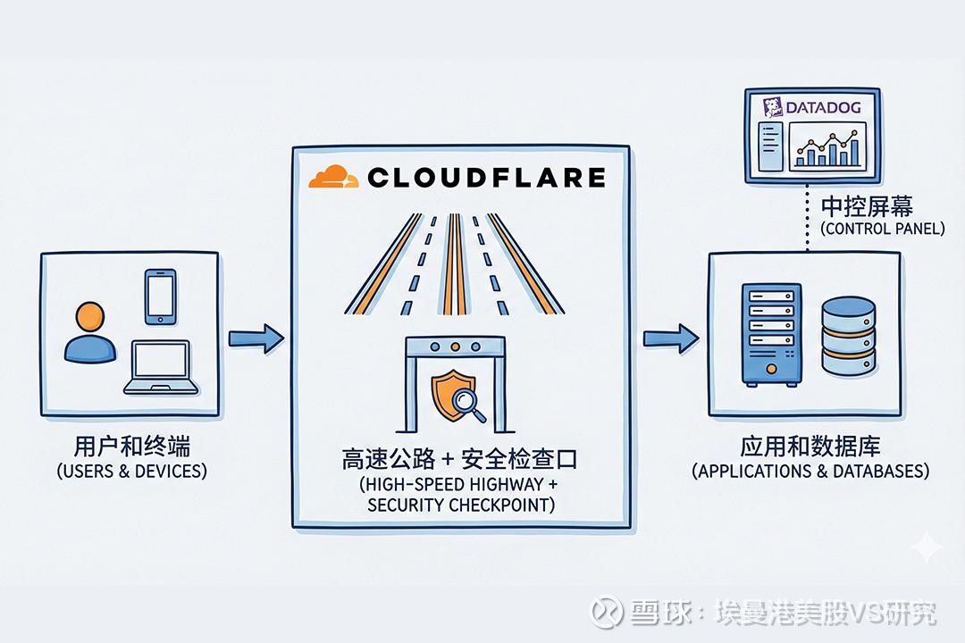 很多人把 Cloudflare(NET)和 Datadog(DDOG)一起看,是因为它们都被归在「云 + AI 基础设施」里。但如果拆开看,会发现两家公司在整张地图上扮演的是完全不同层。