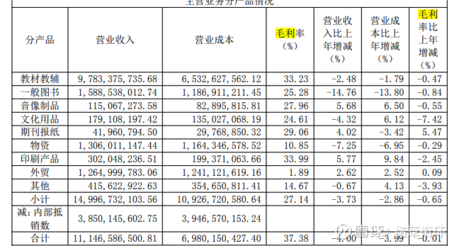 以2024年年报为例,在不考虑内部抵消的情况下,首先教材教辅占据营收的大头,约占营收65%。考虑内部抵消的情况下,外贸、印刷、物资所形成的营收其实大多是内部抵消项,刨去这几项后,教材教辅业务大致占营收的八至九成。