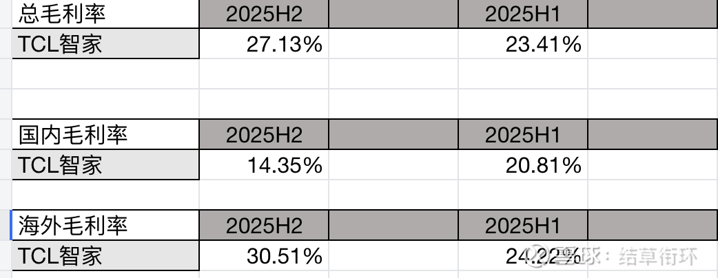 2025年下半年国内市场毛利进一步承压(内卷严重),海外市场反而有较高的提升。总毛利率也不错。