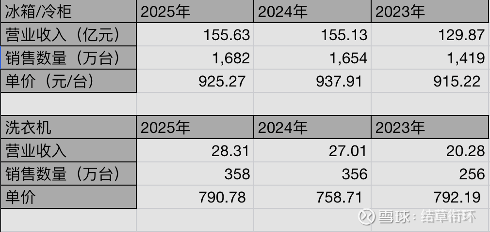 冰箱/冷柜和洗衣机产品线单价波动幅度并不大。