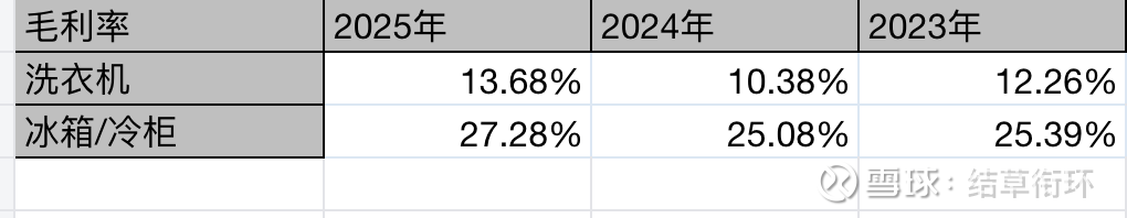 冰箱/冷柜和洗衣机的毛利率都有较好的提升,不过洗衣机(合肥家电业务)的毛利率还是太低了,可能是规模效应还没有展开,如果再扣除四费成本利润率可能就会落在1%-3%之间了。