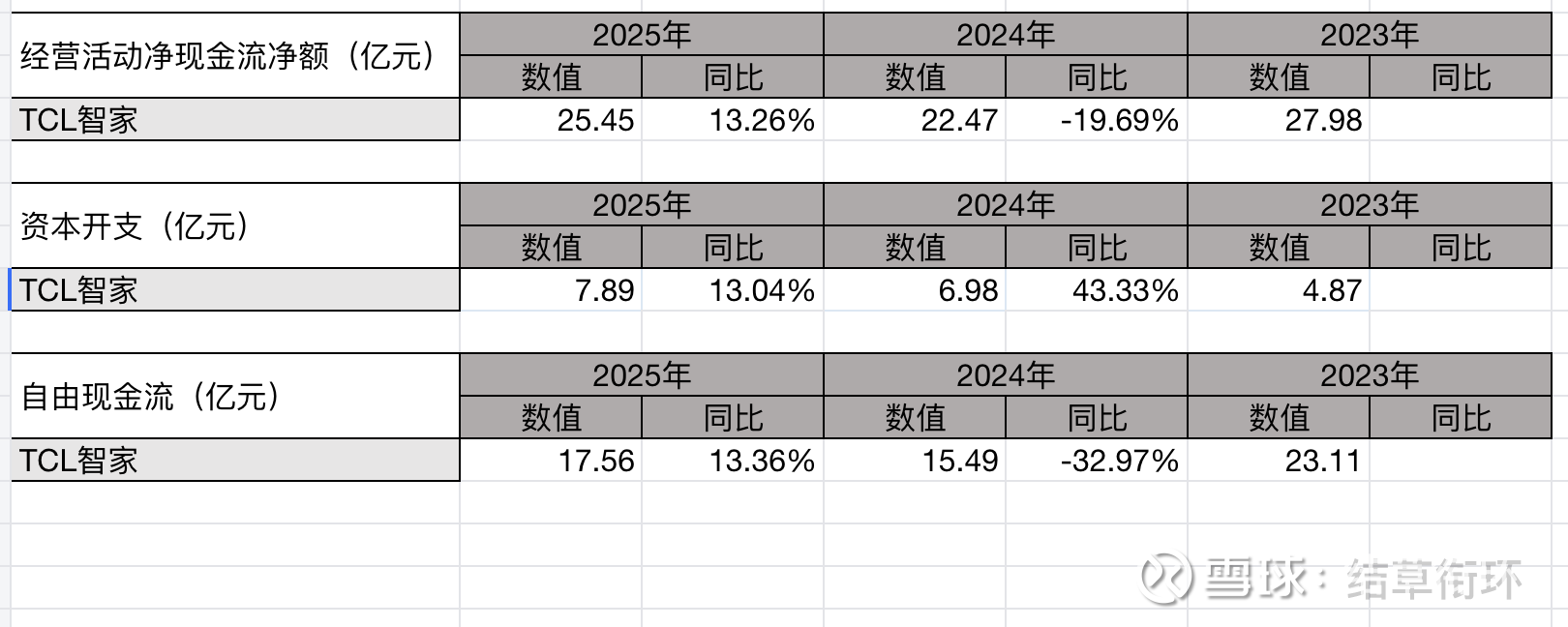 经营活动现金流净额有所回升,资本开支巨大增大(企业仍在扩产能),总的自由现金流比24年有一定的改善。