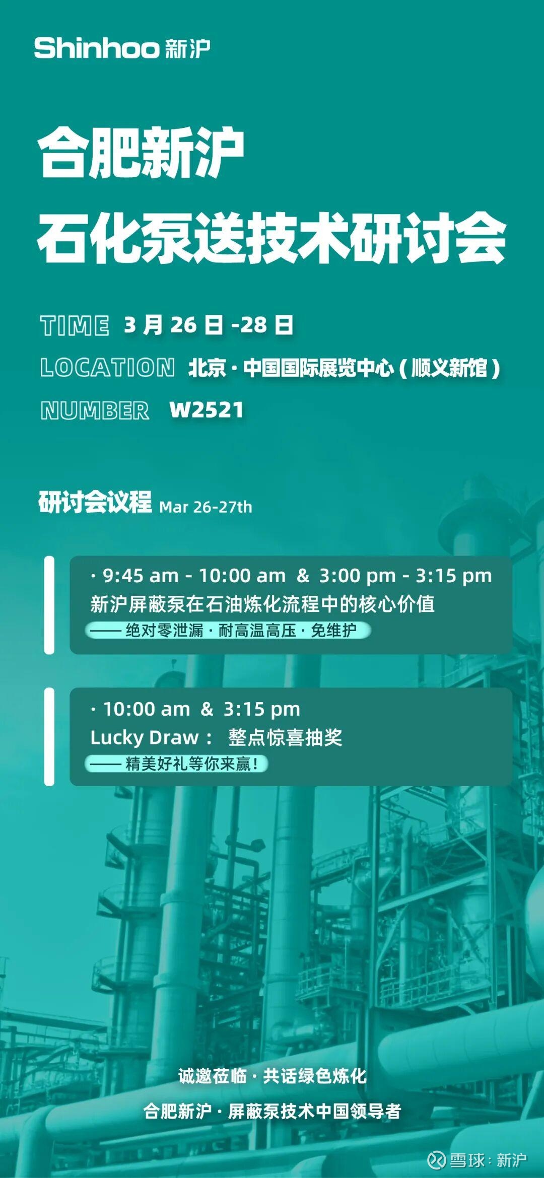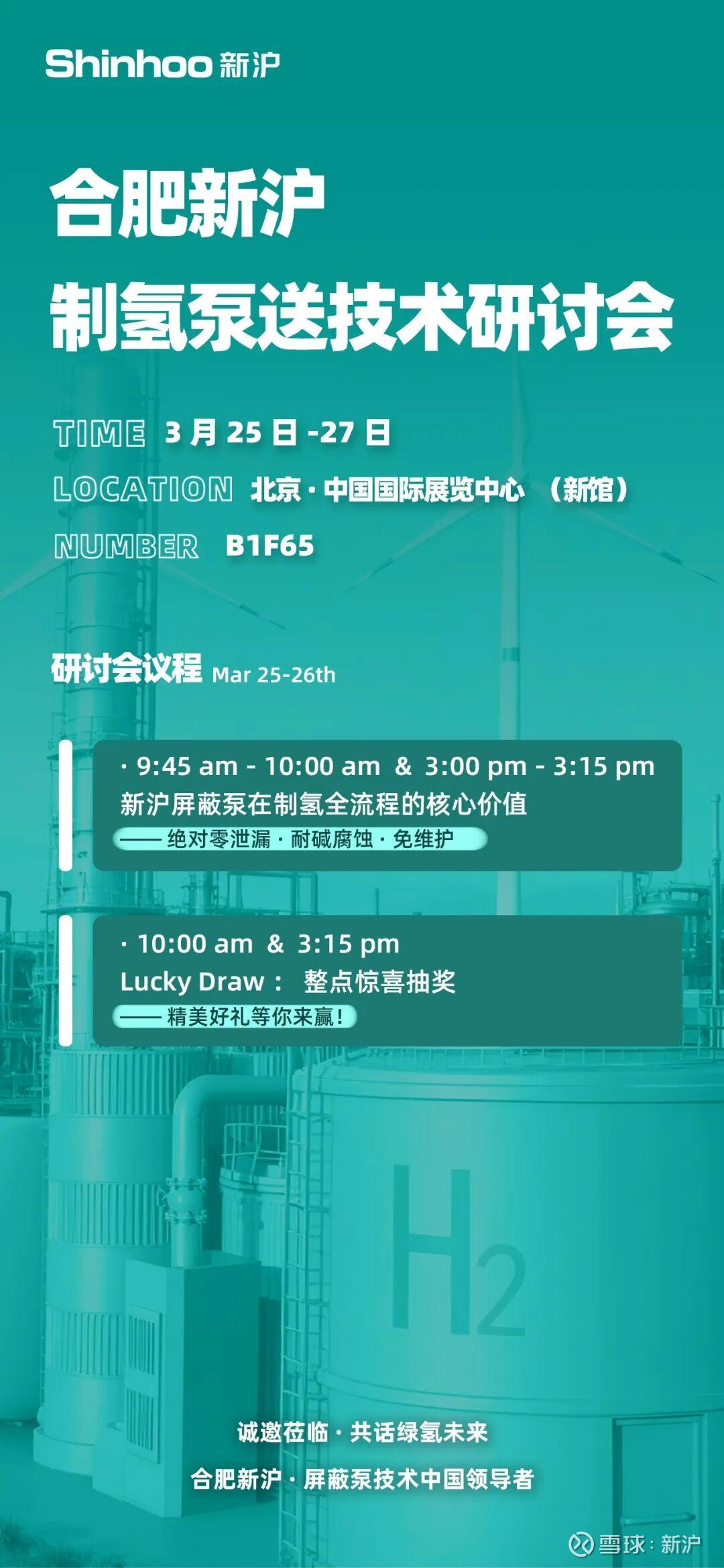 3月25日至27日,合肥新沪将携碱液循环泵等多款制氢专用泵产品亮相北京,与行业同仁深入交流。诚邀您莅临A063展位,共同探讨“绿色石油”时代的装备升级路径。