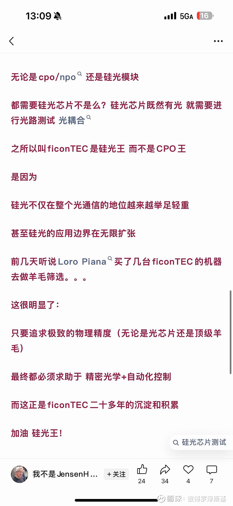 cpo算个屁啊?知道lora piana吗?超级奢侈品,世界首富们的首选!连lora piana都得用ficon的设备,做出来的衣服直接卡住黄仁勋的脖子,区区cpo算啥?$罗博特科(SZ300757)$