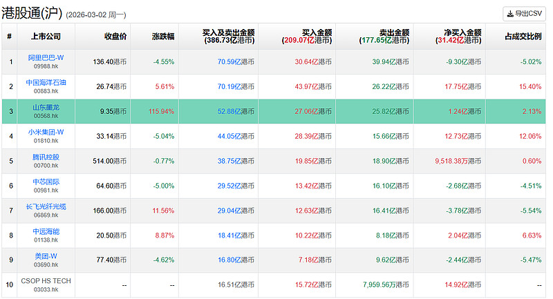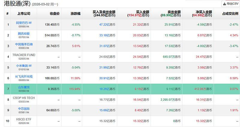 $山东墨龙(00568)$ 沪股通最大买入量27亿,港股通最大买入量9亿,两者合计36亿港币,昨天一天成交58亿港币,占比62%。昨天暴涨115%,今天再度暴涨最高74%,这割韭菜的速度在港股真是匪夷所思。