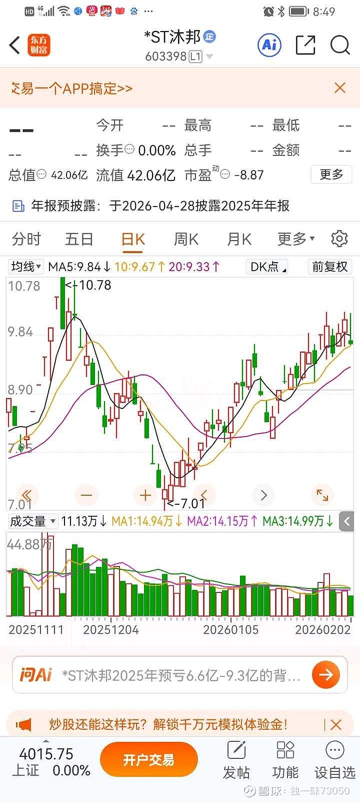 $*ST正平(SH603843)$ 今天买不到正平的可抄底sT沐邦,昨天我进入沐邦己被套一个点,今天如下跌是抄底的好机会。买ST沐邦的理由:买入*ST沐邦的核心理由是国资入主+光伏产能落地+重整推进,有望困境反转与价值重估 。以下是关键支撑: