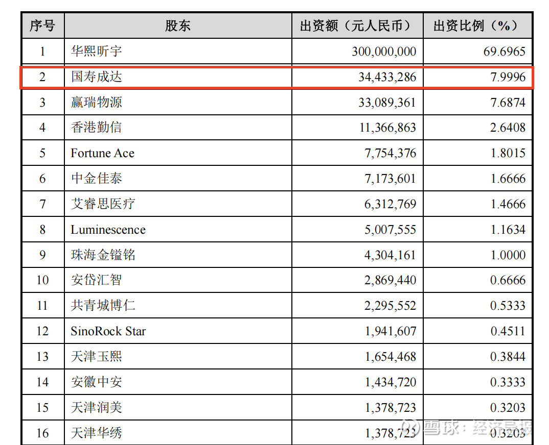 公开信息显示,2019年1月份,华熙福瑞达董事会通过决议,同意香港勤信将其持有的华熙福瑞达16.5186%的股权分别转让给国寿成达、艾睿思医疗等12名受让方;国寿成达对应的出资额为3443.33万元。这意味着,国寿成达自2019年入股华熙生物以来,持股7年之久。