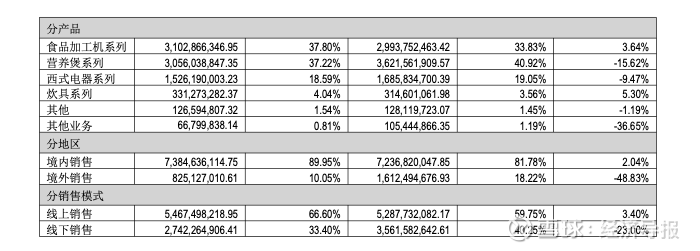 分产品而言,2025年,九阳股份营养煲系列产品、西式电器系列产品营收分别出现15.62%和9.47%下滑;食品加工机系列产品和炊具系列产品营收分别同比增长3.64%、5.30%。