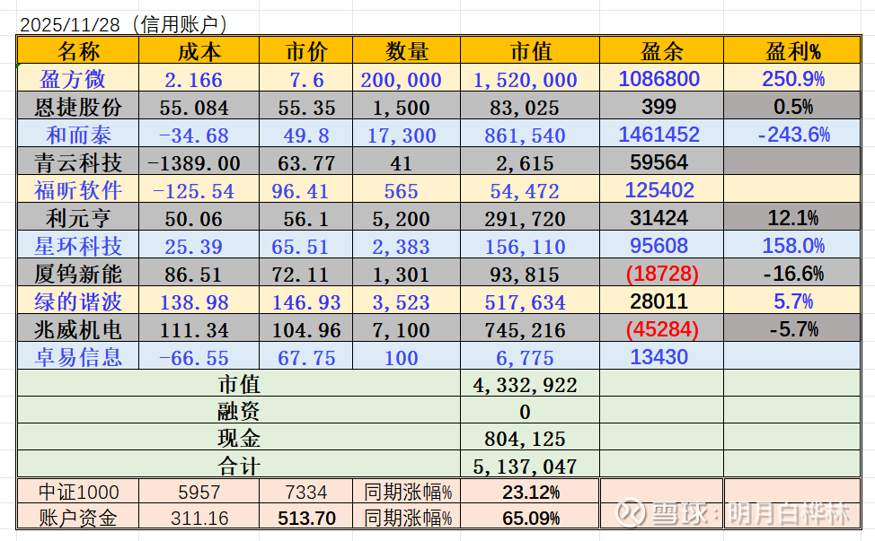 信用账户:周收益 3.42万元,年收益 65.72%。