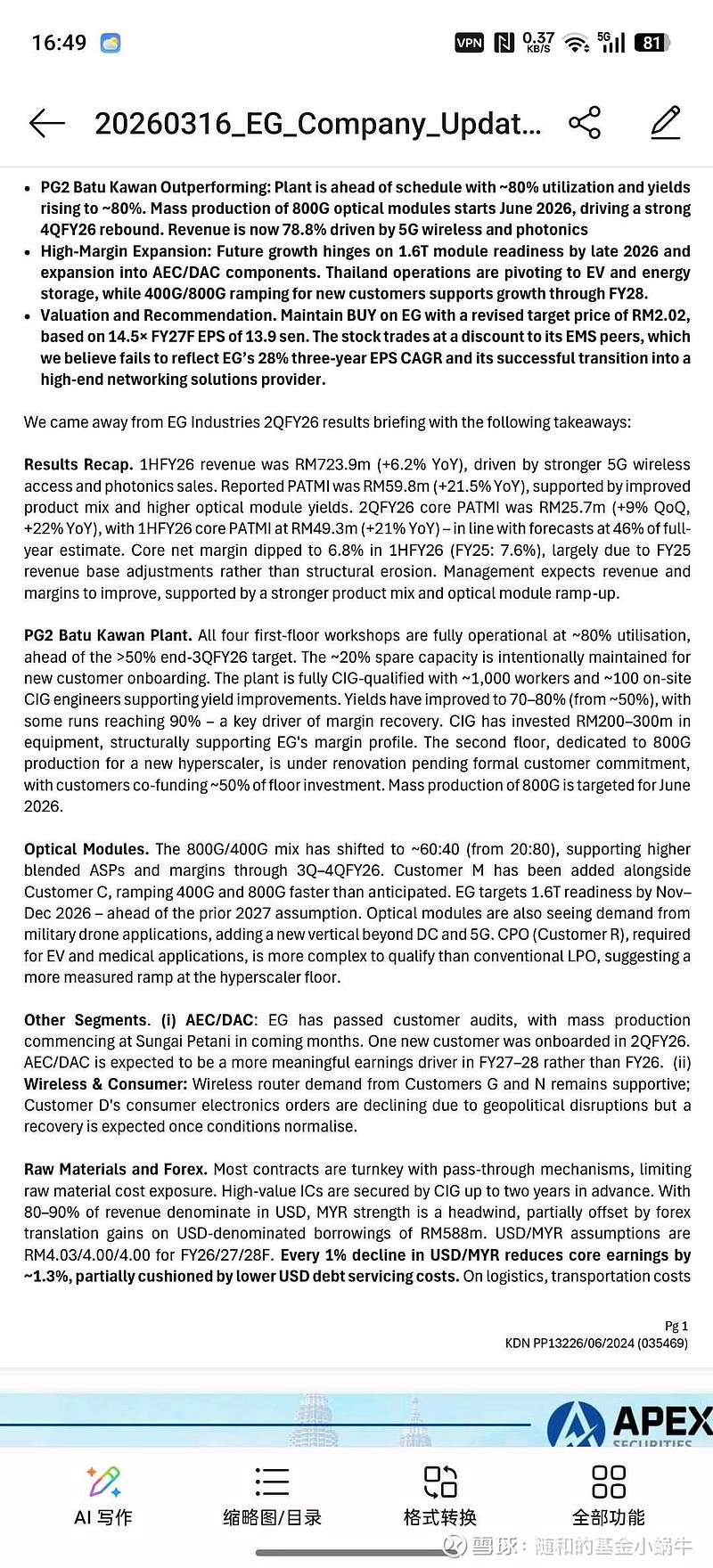 3.800/400g的生产比例从二八到了六四,第一篇研报里写的eg的生产能力根本没眼看,这次看起来好多了。