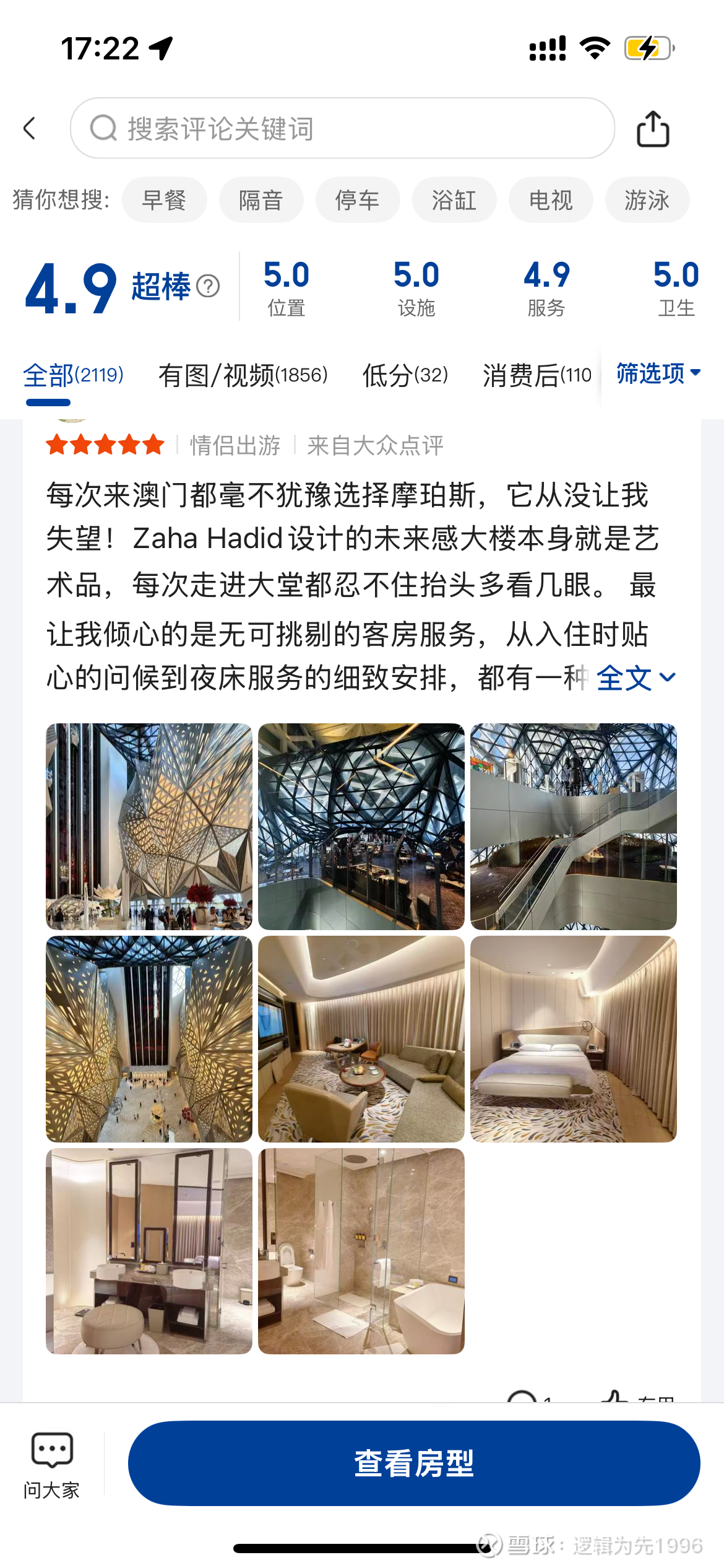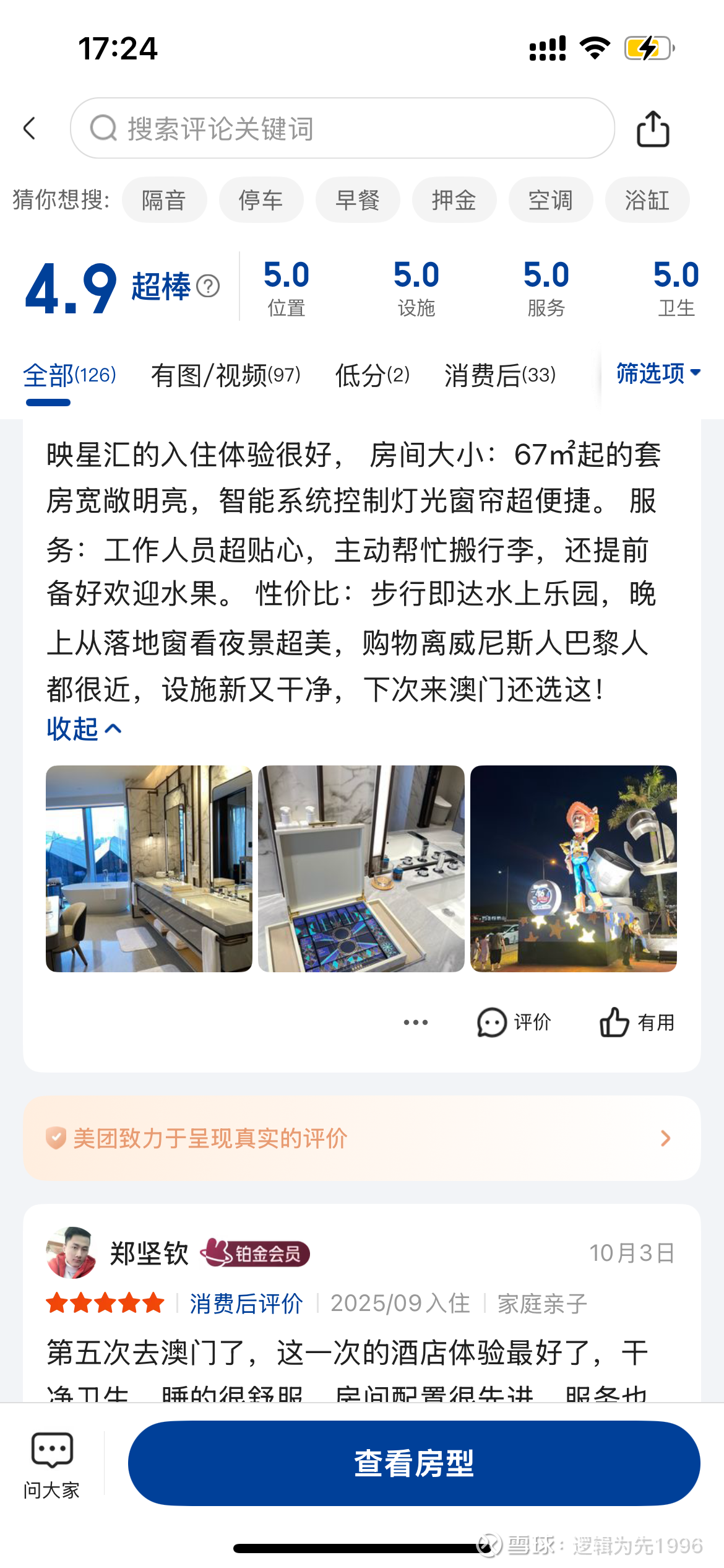 其次就是酒店入住情况,通过我在不同APP上的观察,澳门的酒店基本上都处于爆满状态,酒店价格相较平时基本上都有1-5倍的涨幅,以新濠旗下的高奢酒店摩珀斯为例,好的房间含税价格甚至逼近2万元,新濠下的澳门颐居、映星汇、新濠影汇、新濠锋等基本上都是满房状态,评价基本上也都非常正面。