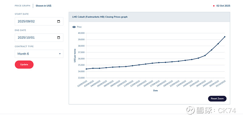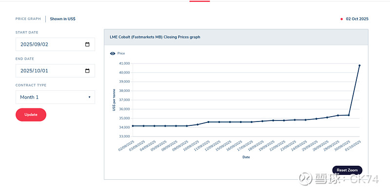 今天港股大涨,LME钴 Month1也跳涨至4万美元以上