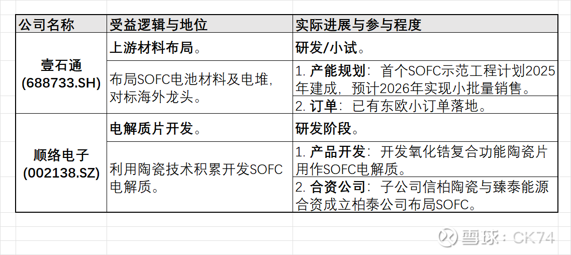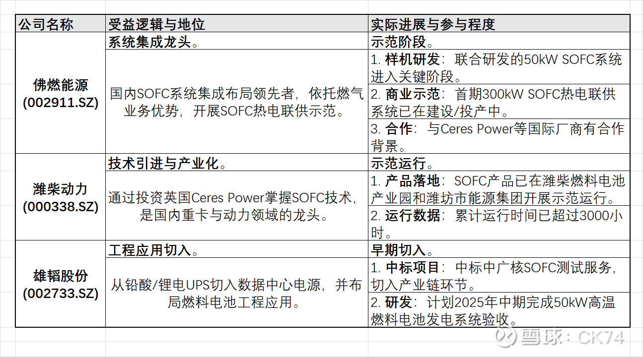 关注逻辑(国内映射):关注佛燃能源和潍柴动力。虽然国内SOFC市场尚处于示范期,但这两家公司在系统集成和技术路线上走在前列,具备长期国产替代和国内数据中心市场开启后的先发优势。