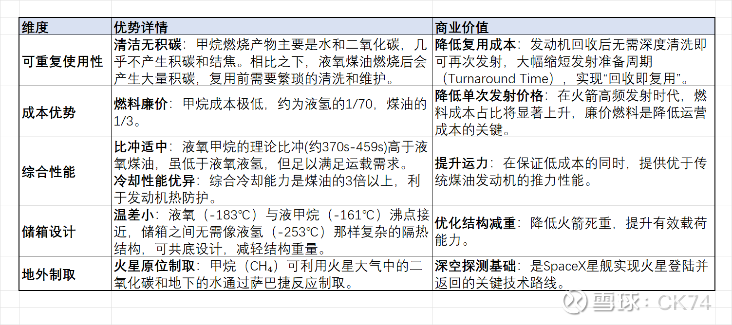 液态甲烷之所以成为火箭发动机燃料的“新宠”,核心在于其完美契合了商业航天“低成本”和“可重复使用”的两大战略诉求。