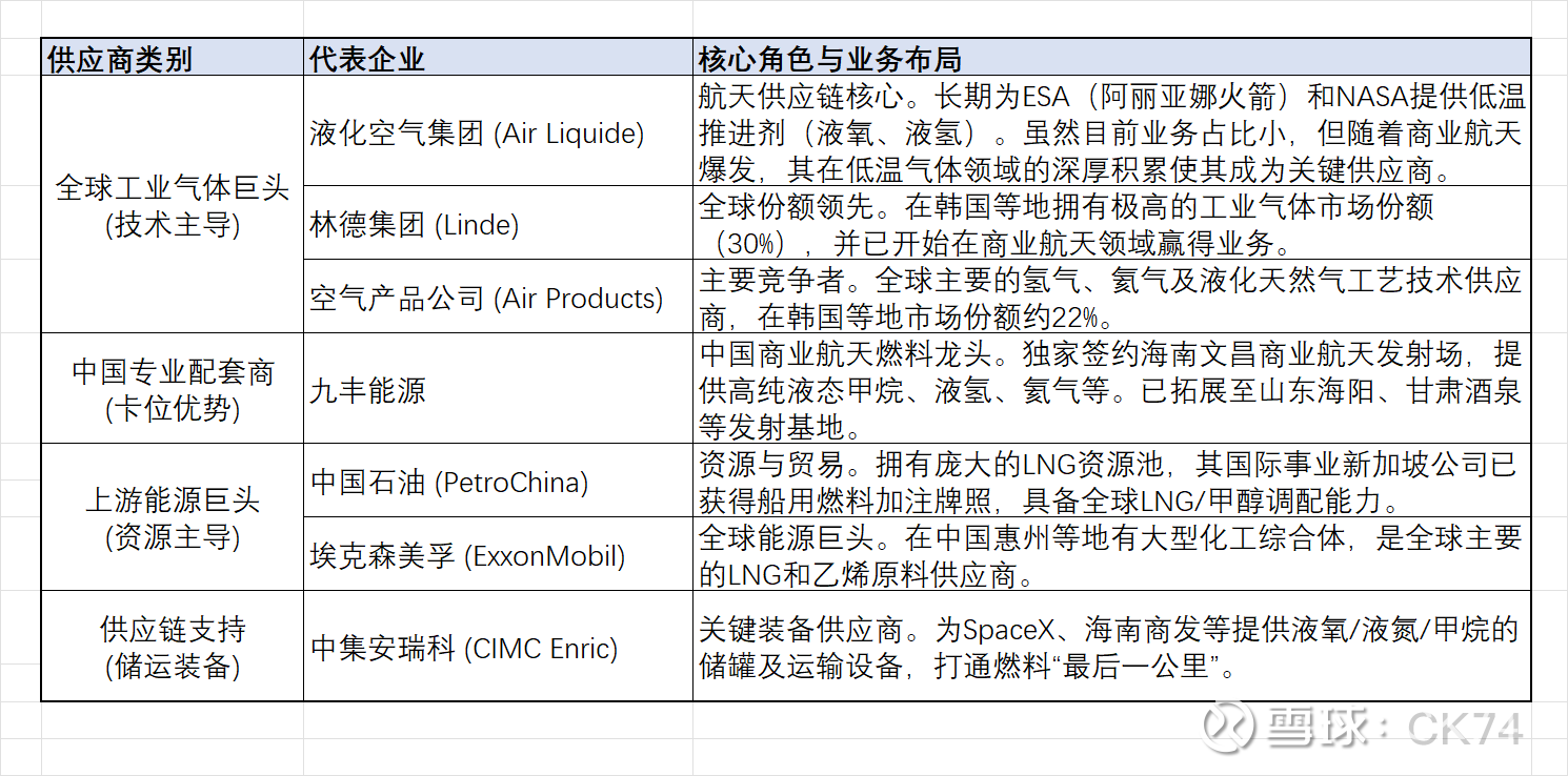 业务逻辑:火箭燃料(尤其是液氧甲烷)对纯度要求极高,普通LNG无法直接使用。工业气体公司具备将普通工业气体转化为航天级产品的核心技术。